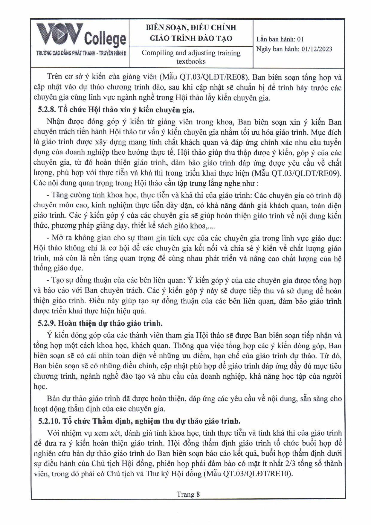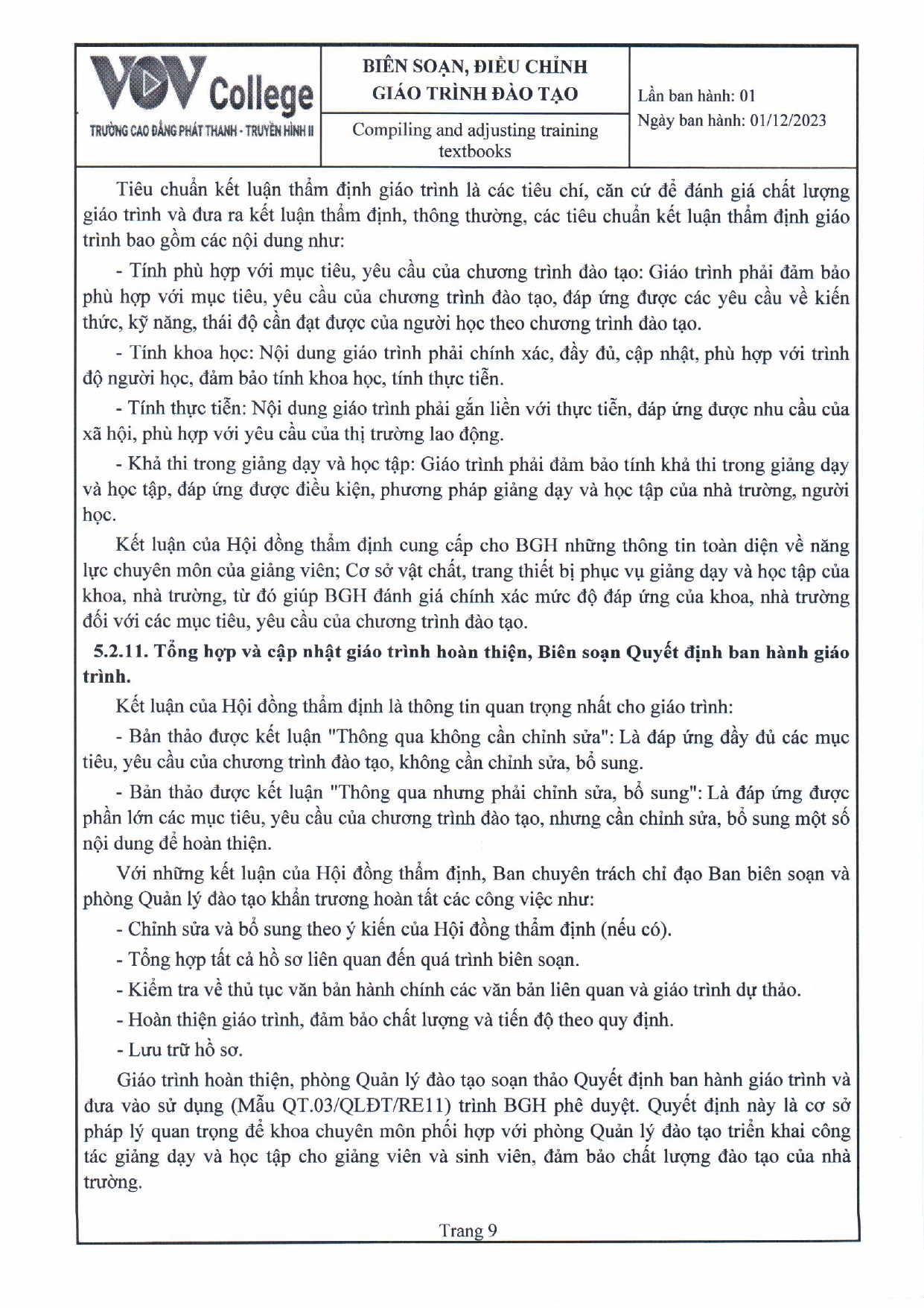 Quy trình biên soạn, điều chỉnh giáo trình đào tạo (Tải về)
