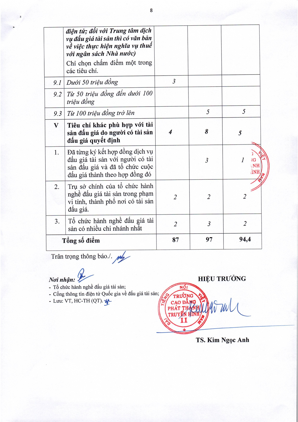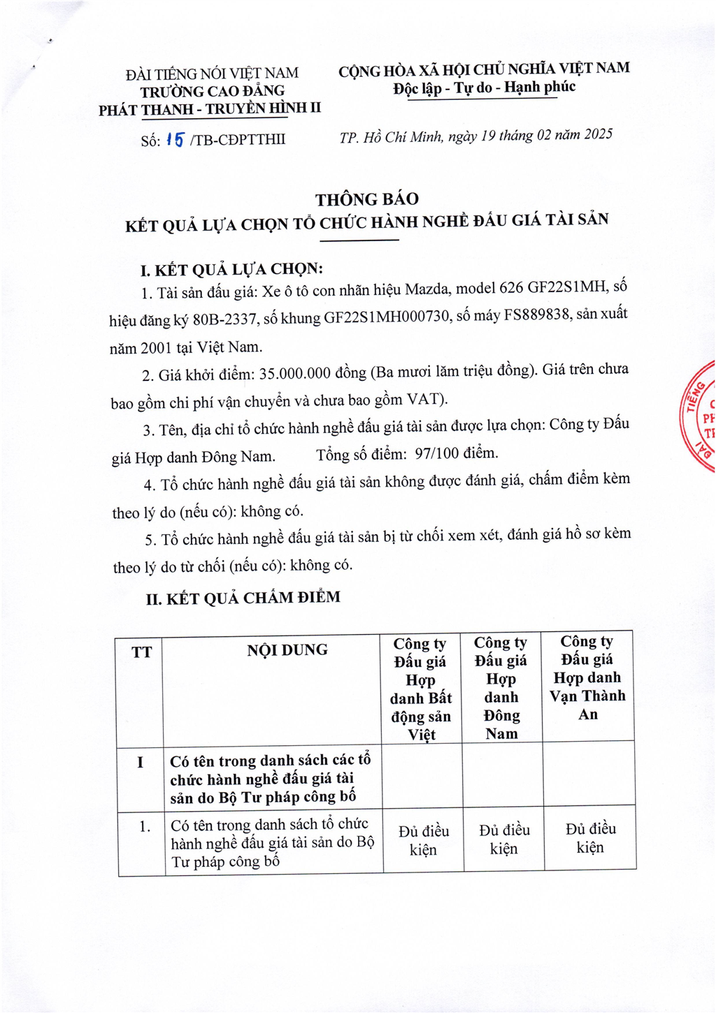 Thông báo kết quả lựa chọn tổ chức hành nghề đấu giá tài sản (Tải về)