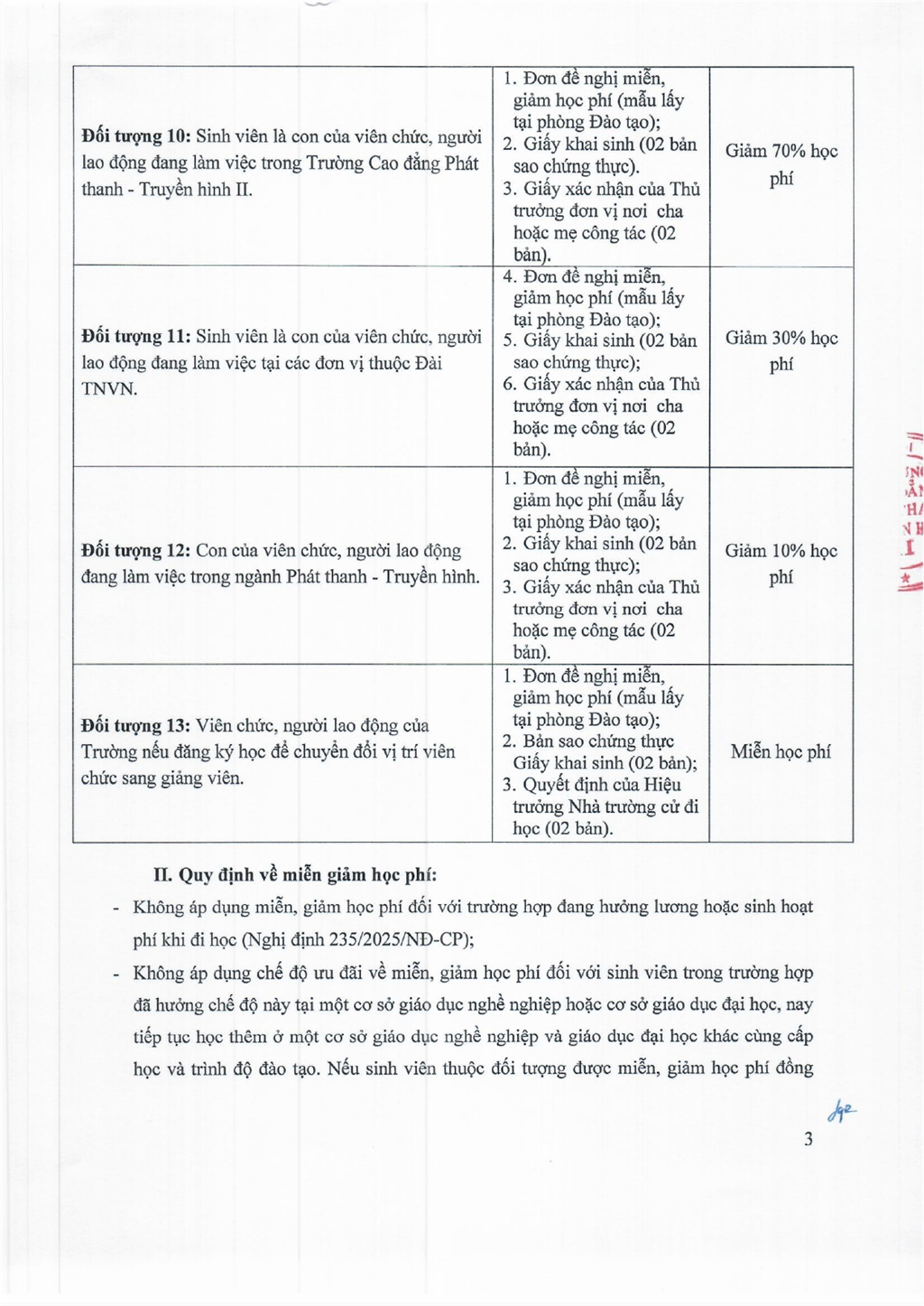 Thông báo số về việc nộp hồ sơ miễn, giảm học phí học kỳ I năm học 2025 - 2026